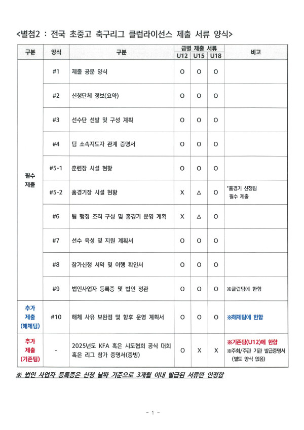 - 별첨2_전국 초중고 축구리그 클럽라이선스 제출 서류 양식통합본.hwp (795.5K) 11회 다운로드 | DATE : 2025-05-21 10:40:27
