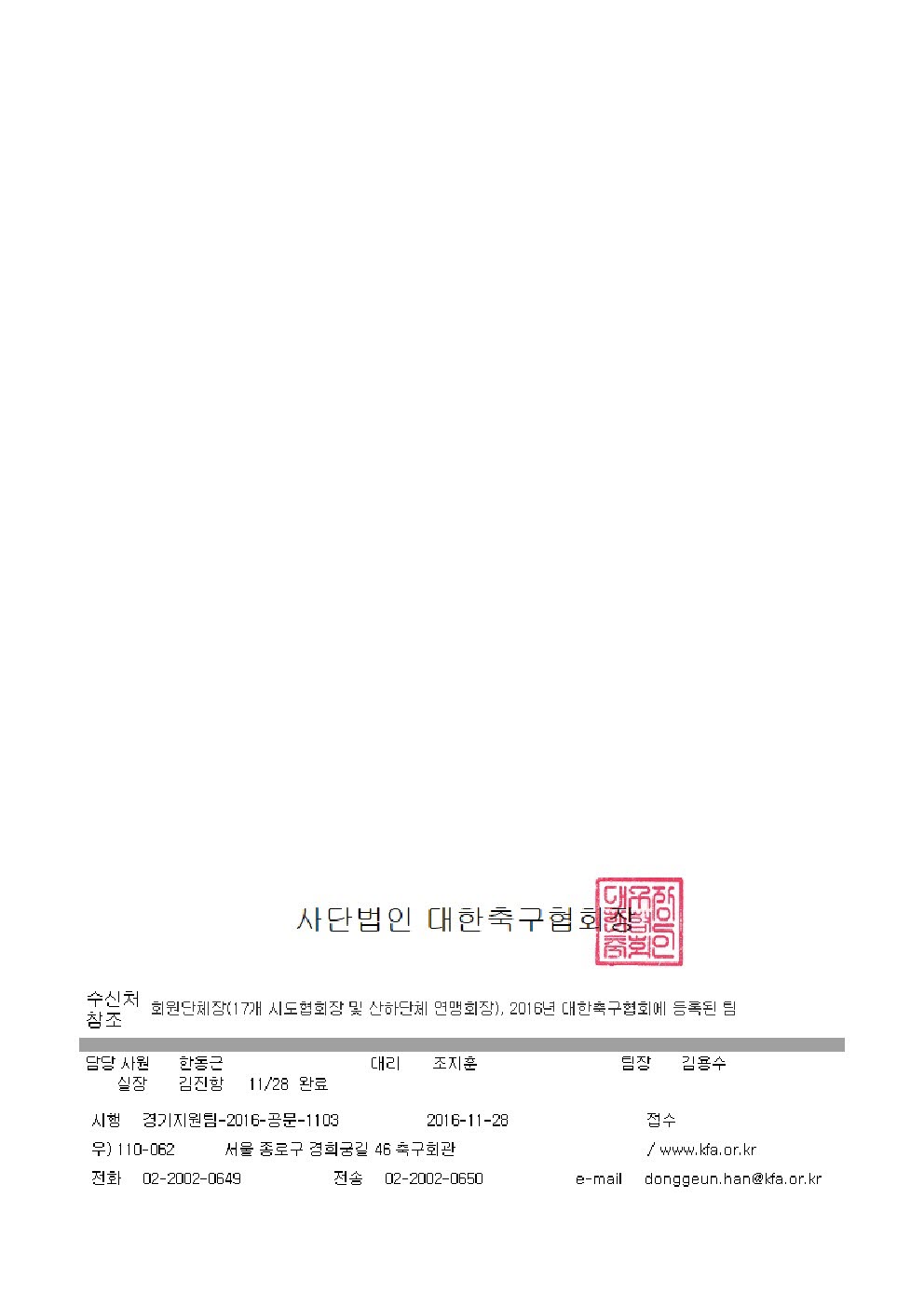 - 이전글2017년 지도자 및 선수 등록 절차 변경 공지 16.12.19