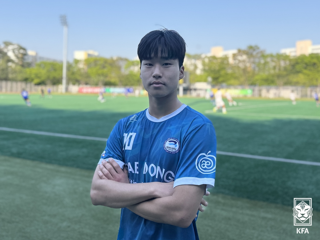대동세무고 오성주가 지난 25일 전국고등축구리그 서울/인천4권역 경기 후 사진 촬영에 임하고 있다.