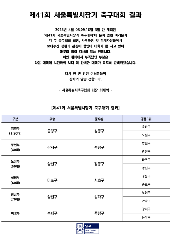 Copyright by 2023 SEOUL FOOTBALL ASSOCIATION All rights reserved.