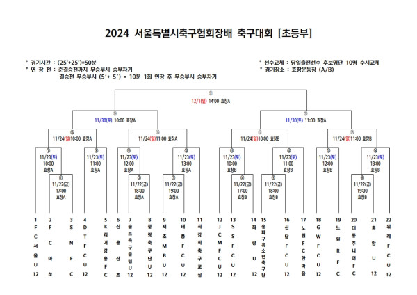 2024 서울특별시축구협회장배 축구대회[초등부] 대진표(※준결승전, 결승전 일정 변경)