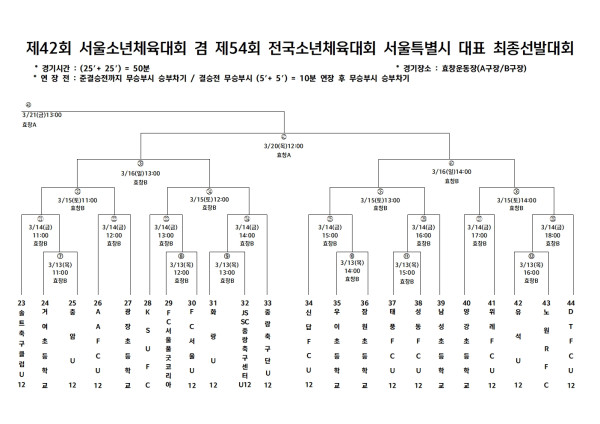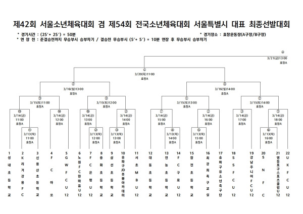 - 다음글2024 서울특별시축구협회장배 축구대회[초등부] 대진표(※준결승전, 결승전 일정 변경) 24.11.19