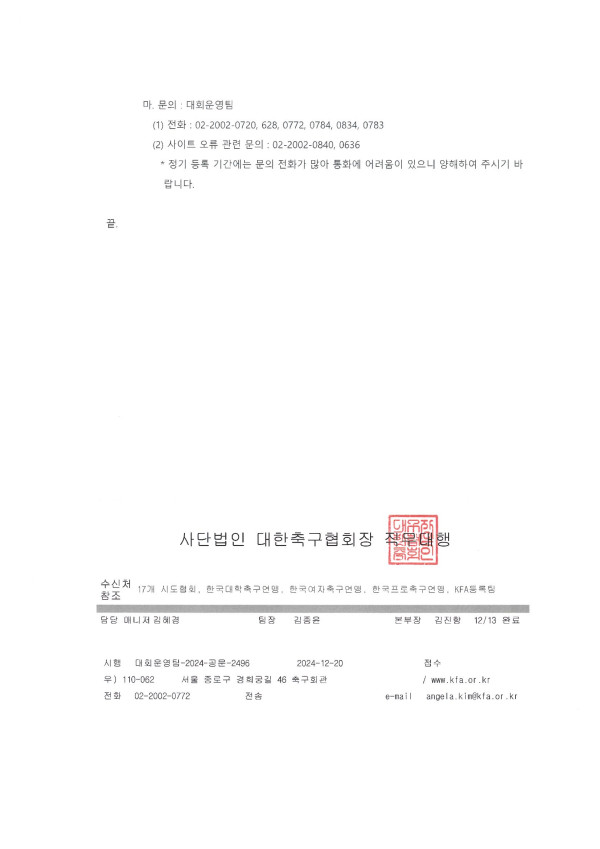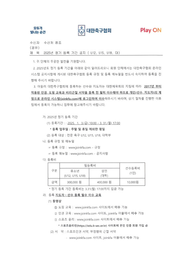 - 2025년 정기 등록 기간 공지 U12, U15, U18, 대.pdf (156.2K) 22회 다운로드 | DATE : 2024-12-27 15:47:17