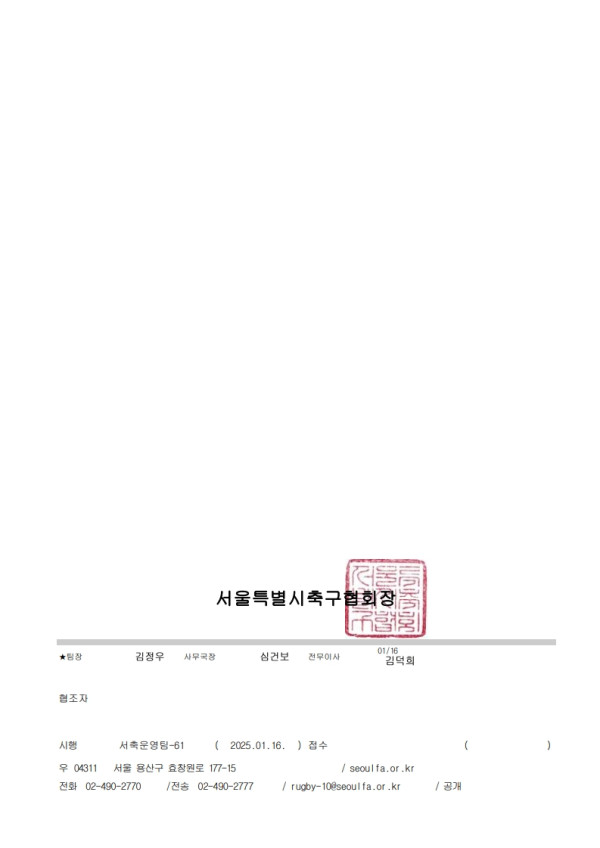 - 2025년 서울특별시축구협회 임시대의원총회 일정 : 2025. 2/7(금) 10:30