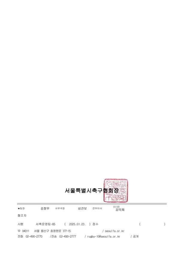 - 다음글서울특별시축구협회 사무국 휴무일 알림 25.01.23