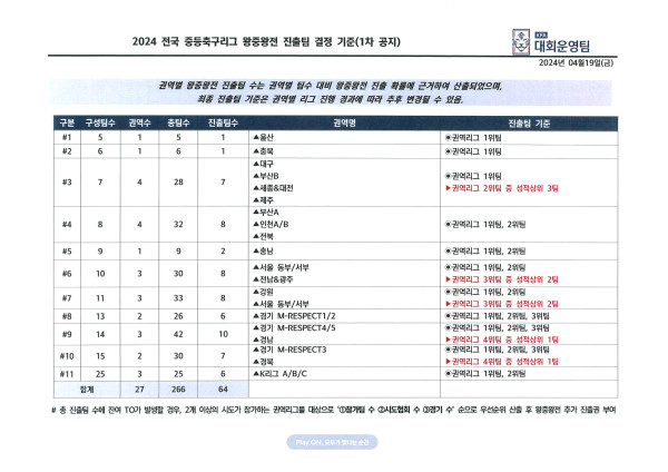 - 1차공지2024 전국 중등축구리그 왕중왕전 진출팀 기준_0419.pdf (59.3K) 126회 다운로드 | DATE : 2024-04-22 13:25:29