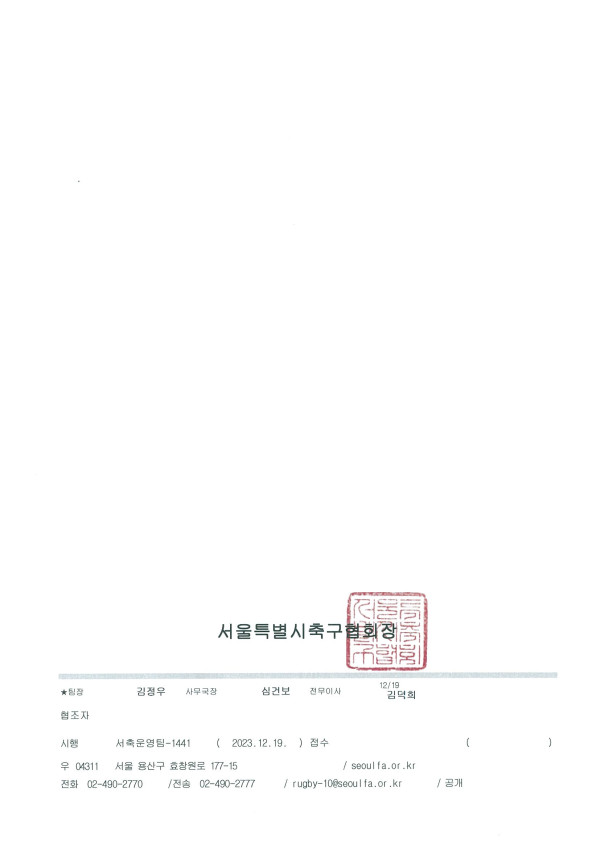- 이전글2024 전국 중등 축구리그(서울권역) 대표자회의 및 권역추첨 안내 23.12.20