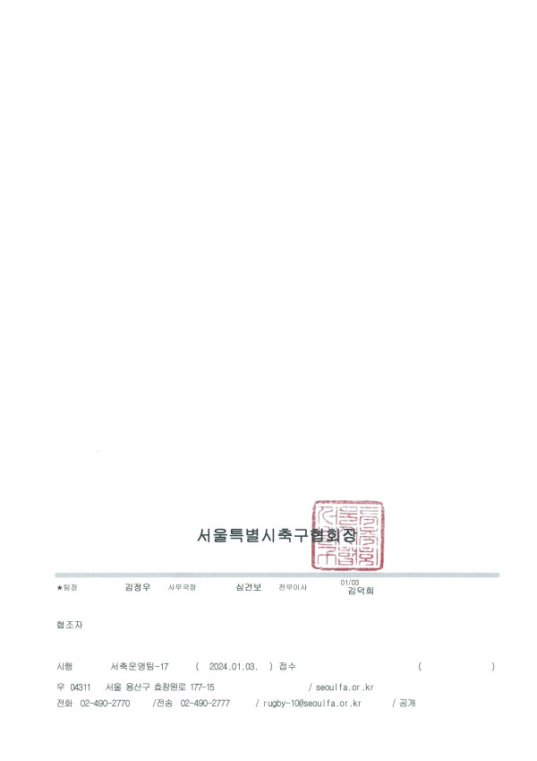 - 2023년 서울특별시축구협회 정기대의원총회 일정 : 2024. 1/29(월)15:00