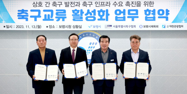 협약은 보령시, 서울특별시축구협회, 보령시체육회, 대천광광협회가 상호 유기적인 협력 체계를 구축해 서울특별시축구협회 등록 축구팀의 발전을 도모하고