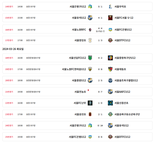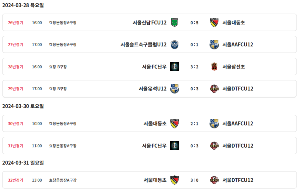 joinkfa.com -> 리그/대회 -> 검색창 (서울소년체육대회) 검색 -> [초등부]제41회 서울소년체육대회 겸 제53회 전국소년체육대회 서울시대표선발대회[남자U13세이하부] -> 일정결과