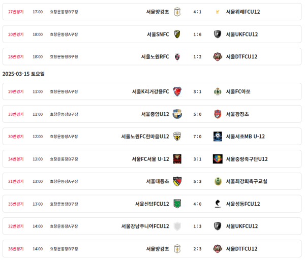 AAFCU12, DTFCU12, FC구로U12, FC서울 U-12, FC서울풀굿코리아, FC아쏘, FC은평U12, GWFCU12, JSSC중랑축구센터U12, KSUFC, K리거강용FC, SNFC, SSFCU12, UKFCU12,