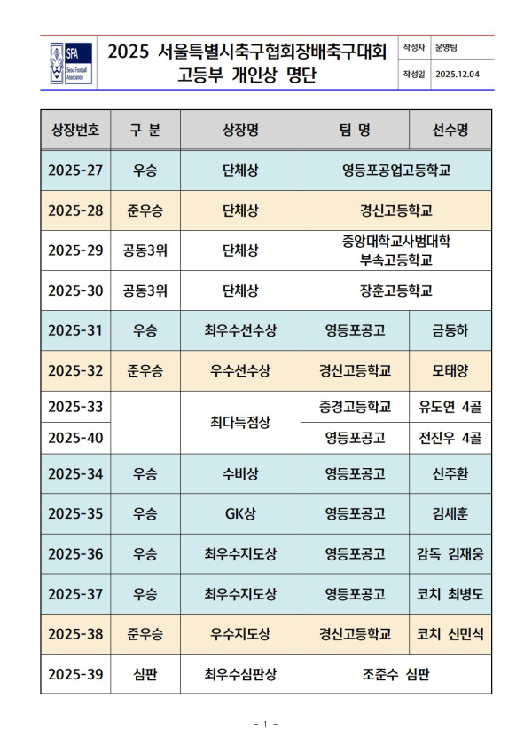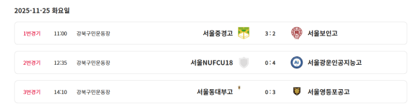 - 이전글2025 서울특별시축구협회장배 축구대회[중등부](우승-장안중 / 준우승-석관중) 25.12.04